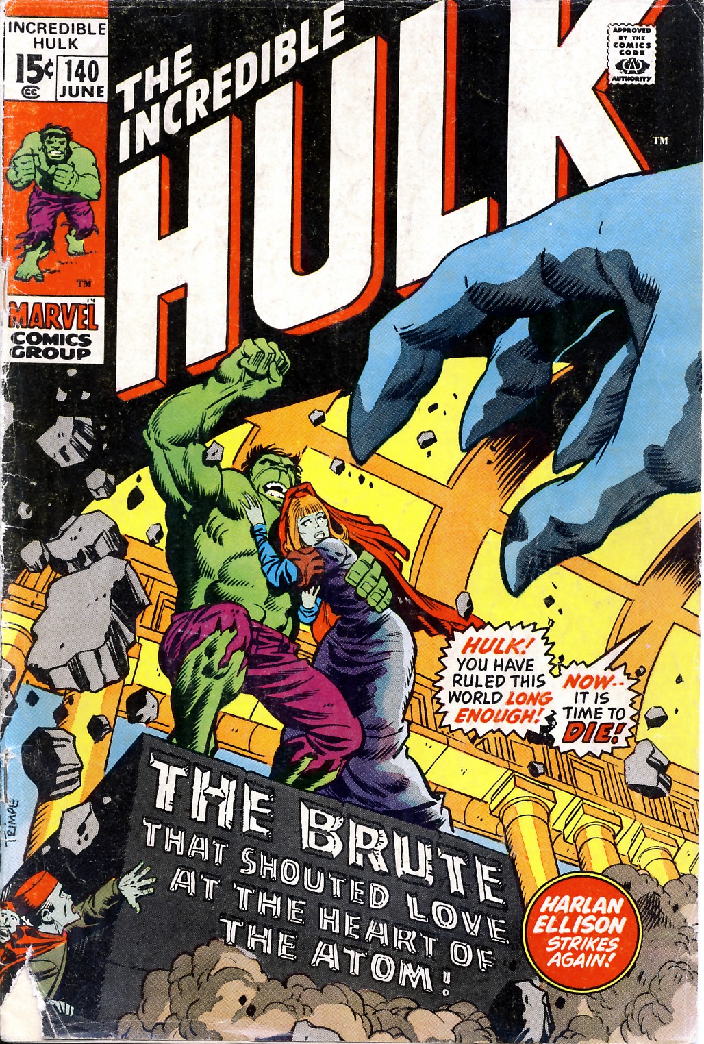 And yet, right there on the lower right-hand cover of The Incredible Hulk #140 is the blurb “Harlan Ellison Strikes Again!” Yes, the mighty Harlan was not afraid that his reputation might be soiled by working in the lowly comics field. Who knows what his reasoning was in taking on this job (beyond the obvious paycheck), but in hindsight it looks shrewd, introducing an entire young generation to his name and work. It was certainly my first exposure to him.